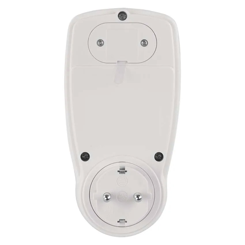 digitalni merač potrošnje struje, od 2W-3680W, unutrašnja upotreba, zaštita: IP 20, led identifikacija preopterećenja, max.memorija 9.999h, rez.akumulator 2× 1.5 V (LR44/AG13), napon: 230 V~/16 A max., merenje potrošnje od 0-9.999 kWh, maksimalno opterećenje: 3.680W, zaštita za decu, dimenzije 75x75x150mm