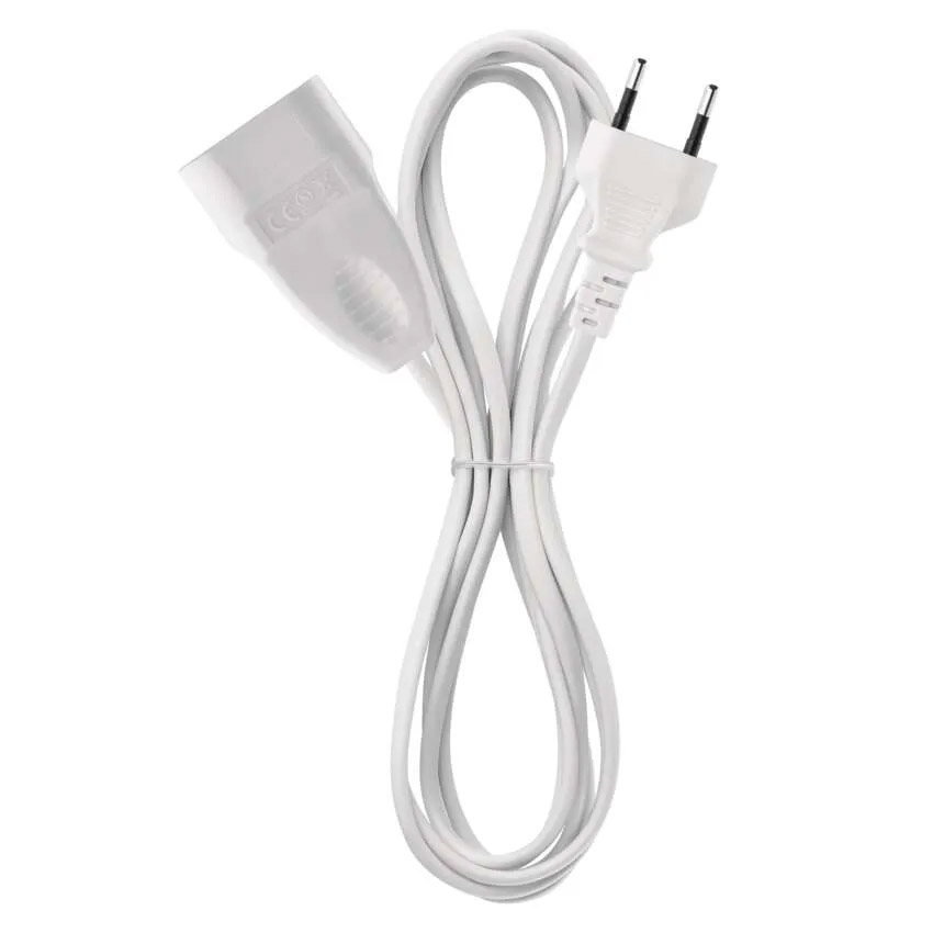PVC produžni kabel sa utičnicom, 1× Euro "C", presek kabela 0,75mm2, zaštita IP20, napon/struja: 250V~/2,5A maks., maks. strujno opterećenje: 2,5A/575 W, dužina: 5m, bela boja