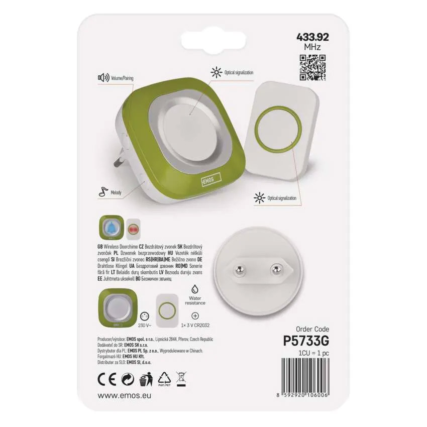 Zvono zeleno bežično za utičnicu Emos P5733G